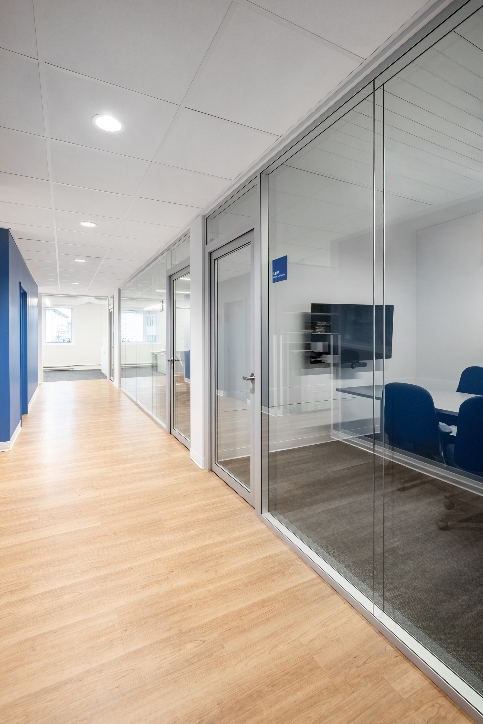 Le projet de réaménagement du Centre Augustine-Plamondon visait purement et simplement à dévoiler et mettre en valeur la structure existante de poteaux, poutres et pontages de bois massifs qui était malheureusement dissimulée depuis de nombreuses années derrière des plafonds de carreaux acoustiques. La stratégie principale derrière la mise en valeur de la structure de la défunte « Perrin Gloves » fut d’alléger et soulager le champ visuel d’un maximum d’équipements techniques à l’intérieur de l’espace. Cette stratégie avait également pour effet de favoriser un éclairage naturel à la fois abondant et agréable ainsi que des percées visuelles jusqu’à l’extérieur d’à peu près n’importe où dans l’espace. Pour arriver à cette fin, les architectes ont proposé de créer un volume dans l’espace, un « carrefour », qui sert à la gestion des différents flux dans l’espace, que ce soit la distribution des services jusqu’aux différents postes ou la simple circulation des employés dans l’espace.